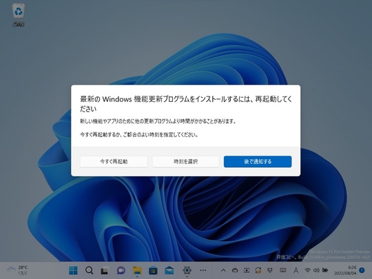 また、『作業の中断』を避けるため、パッチを適用せずにOSを再起動したり、シャットダウンすることも可能。OSをセットアップするのに時間がかかり、すぐに作業に取り掛かれないという不満を解消するため、セットアップ中の更新プログラムのダウンロードをスキップして、デスクトップ画面へ素早く移行する機能も導入される。