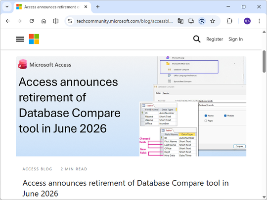 Microsoft、「Microsoft Access」に付属の「Database Compare」ツールを廃止へ