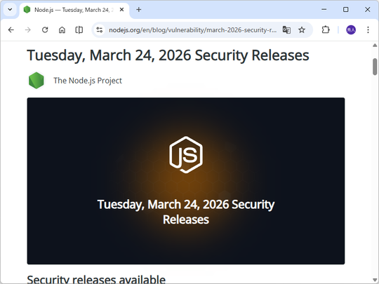 「Node.js」のセキュリティアップデートが、3月24日(米国時間)に実施された。今回リリースされたバージョンは、以下の通り。できるだけ早い更新が望ましい。