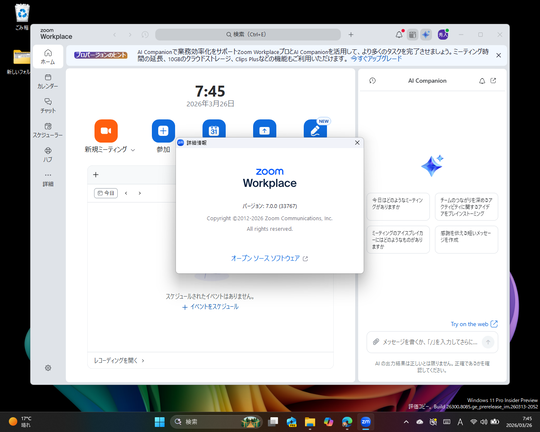米Zoom Video Communicationsは3月24日(現地時間)、「Zoom Workplace 7.0.0」をリリースした。2024年4月以来、約2年ぶりのメジャーバージョンアップとなる。