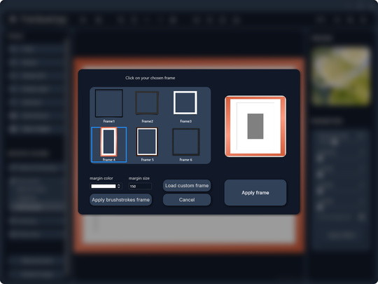 - キャンバス・紙などのテクスチャーを適用。ブラシストローク風フレームなどの装飾枠も追加
