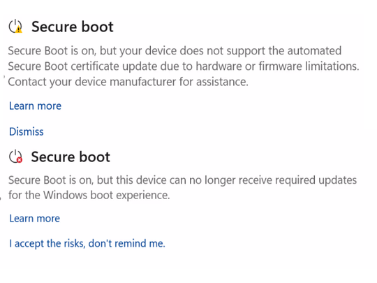 「セキュア ブート」(Secure Boot)は、デバイスを起動するブートプロセスで読み込まれるソフトウェア(UEFIドライバーなど)が正しいものかどうかをチェックし、マルウェアが混入しないようにする仕組み。その検証プロセスにはデジタル証明書が用いられるが、2011年に発行されたものは2026年6月以降、順次期限切れを迎える見込みだ。期限切れにより「セキュア ブート」証明書が失効してしまうと、デバイスが起動不能になってしまうおそれがある。