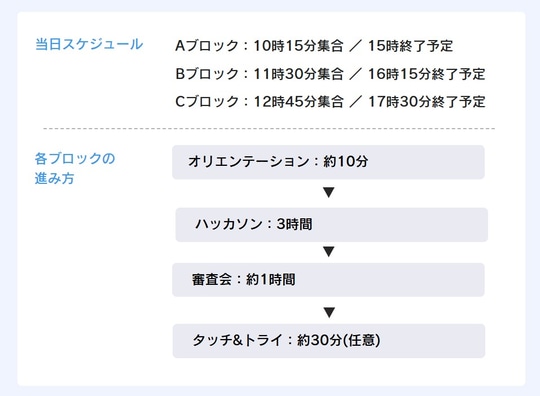Cブロック:12時45分集合 / 17時30分終了予定 - 各ブロックの進み方