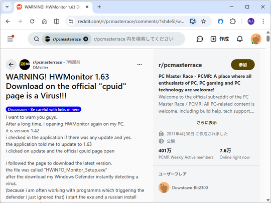 そのほかにも、「HWMonitor」や「CPU-Z」のZIPアーカイブのダウンロードリンクが正規の「cpuid.com」でないケースが観測されたとのこと。これは編集部環境でも確認している。