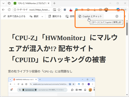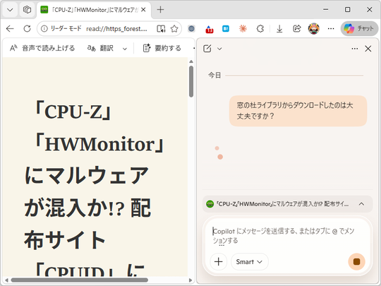 米Microsoftは4月11日(現地時間)、デスクトップ向け「Microsoft Edge」v147.0.3912.60を安定(Stable)チャネルでリリースした。「Edge 147」では、「イマーシブ リーダー」に「Copilot」が統合。サイドパネルで「Copilot」を開き、閲覧中のページについて尋ねられるようになった。