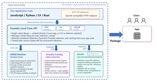 - 自己完結型:「Foundry Local」さえあればローカルAIが利用できる。サードパーティー製アプリなどの外部依存関係を持たず、AIを動かすにあたりユーザーがなにか設定する必要もない