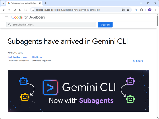 米Googleは4月15日(現地時間)、AIコーディングエージェント「Gemini CLI」がサブエージェント(Subagents)に対応したと発表した。OpenAIの「Codex」でも採用されている機能で、巨大なコードベースでも高速かつ効率的に処理できるようになる。