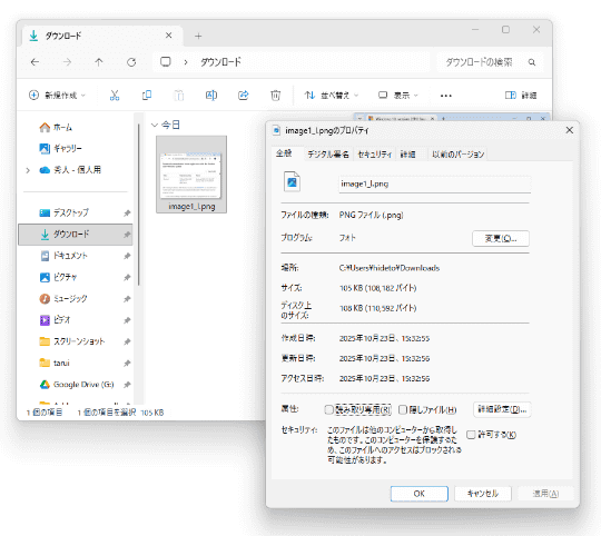 こうしたダウンロードファイルで「エクスプローラー」のプレビューを有効にするには、ファイルのプロパティダイアログを開き、ダウンロードファイルに付与されているメタデータ「Mark of the Web」(MotW)を手動で削除しなければならない。