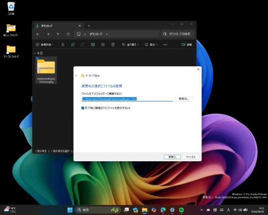 「エクスプローラー」ではさまざまな圧縮ファイルを展開(解凍)できるが、本ビルドではさらに対応フォーマットが拡充されている。