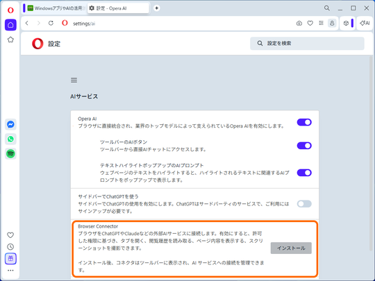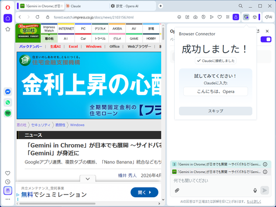 「ChatGPT」「Claude」からWebブラウザーを参照・操作 ~「Opera」に新AI機能が追加