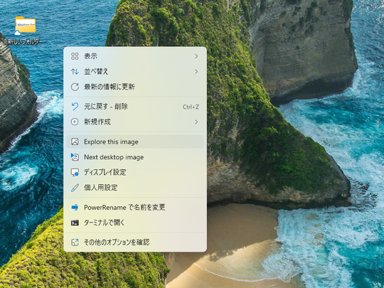 これに加え、「Windows Insider Program」では新しい右クリックメニューがテスト中だ。デスクトップの何もないところでマウスを右クリックすると、次の2つのメニューコマンドにアクセスできる。