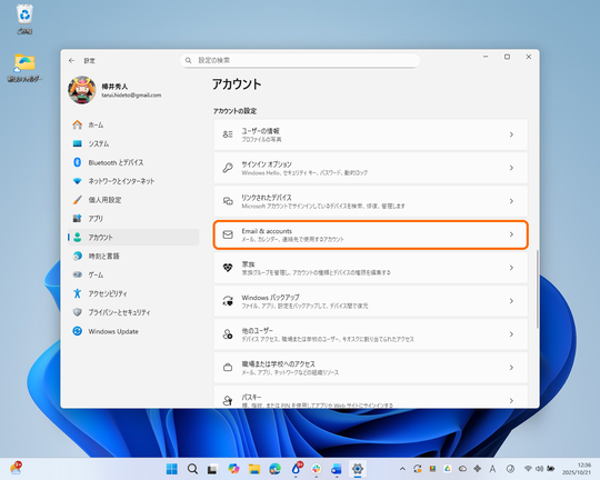 このセクションでは「Windows メール」アプリで利用する「Outlook.com」や「Exchange」のメールアカウント(OSのものではない)も追加できたが、この「Windows メール」アプリは2024年末をもって廃止された。後継の「Outlook」アプリは、OSではなく自前でメールアカウントを管理するため、[メール、カレンダー、連絡先で使用するアカウント]セクションは不要となったのだろう。[メールとアカウント]設定ページの「メールと」という表現も、実態に合わなくなったため、同時に削除されたものと思われる。