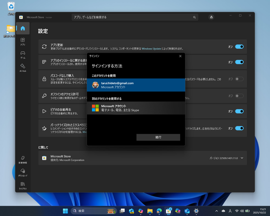 Microsoft製のアプリのなかには、OSのサインインに利用するメインの「Microsoft アカウント」とは異なるアカウントでもサインインできるものがある(「Microsoft Store」アプリなどが代表例)。