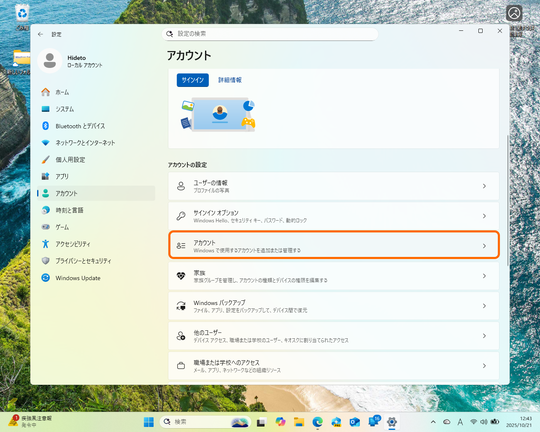 新しい [アカウント]-[アカウント]設定ページ は、こうしたアプリで利用するメインおよびサブの「Microsoft アカウント」を管理するところといえるだろう。(OSではなく)Microsoftアプリなどが利用する「Microsoft アカウント」の資格情報(ログイン情報)を複数保管し、アプリがそれを要求したときに提供する役割を担う。もし使わないサブアカウントがあれば、ここで削除することも可能だ。