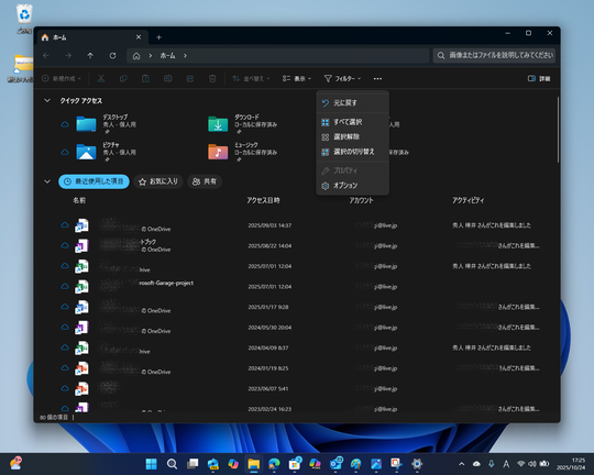 「KB5067036」では個人用の「Microsoft アカウント」とローカルアカウントで、この[クイック アクセス]セクションを [推奨]セクション に置き換える機能が利用できるようになった。