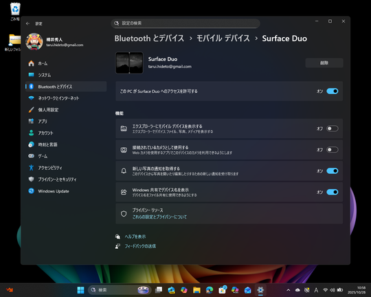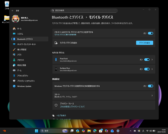 近年のWindows 11にはモバイルデバイス――Android搭載のスマートフォン――との連携を実現する仕組み(クロスデバイス エクスペリエンス ホスト)が搭載されており、以下のことが行える。これらは個別にON/OFF可能で、明記されている場合を除き既定有効だ。