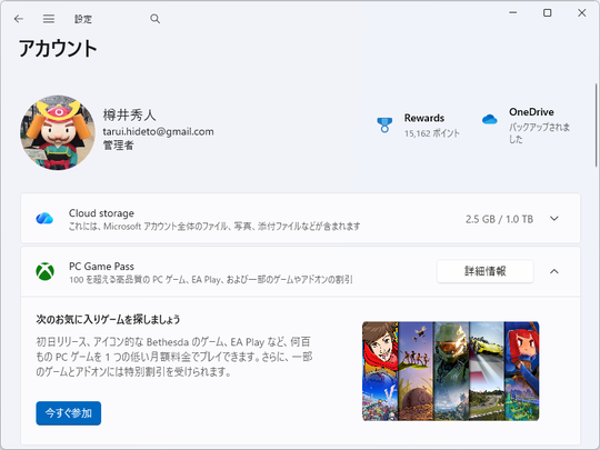 これに合わせて、米国時間12月1日にリリースされた「Windows 11 バージョン 24H2/25H2」のプレビューパッチ「KB5070311」では、「設定」アプリでブランディングや特典の変更を反映する修正が行われた。「Game Pass」に加入しているならば、「設定」アプリの[ホーム]ページ、[アカウント]ページ、[スタート]画面のプロファイルパネルなどで加入済みプランを確認できる。