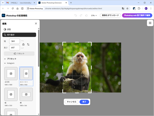 とくに切り抜きツールは便利で、たとえば『Instagramのストーリーに投稿するサイズに切り取りたい』、『Xのカバー写真向けのサイズがほしい』といった要望にも応えてくれる。