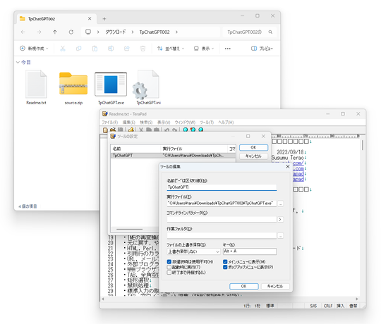 老舗の人気テキストエディター「TeraPad」をAI対応にする外部ツール「TpChatGPT」