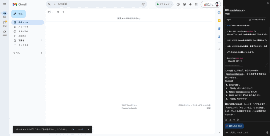 例えば、Gmailにログインした状態で、以下のように指示しても……