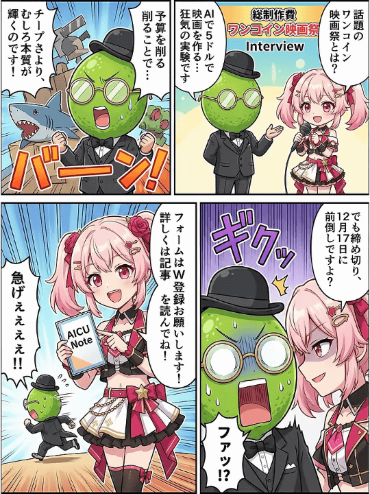 - 🔗総制作費ワンコイン映画祭 が熱い!AICUコラボ企画で"チープな映画"に挑戦しよう!
