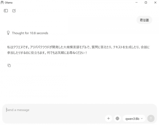 〇「qwen3:8b」(パラメーター数82億)の場合