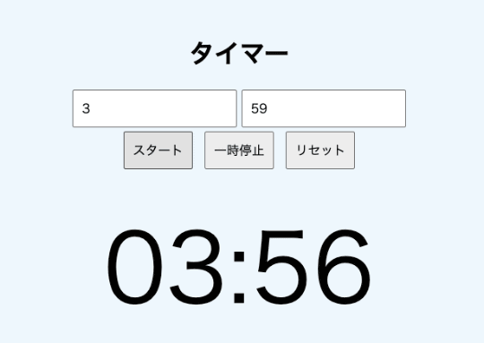 次は『カウントダウンタイマーを作って』。こちらも 78行のHTMLファイルが生成され、タイマー機能、一時停止、リセット、さらにWeb Audio APIを使ったアラート音まで実装されていました。外部ファイル不要でビープ音が鳴るのは賢い設計です。ただし、一時停止後の再開で残り時間がリセットされるバグがありました。