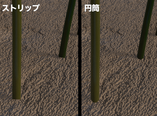 これはヘアーをその名の通り円筒で立体的にレンダリングします。ストランドは細い線、ストリップは平たいリボンで近似しているため、リアルになったといえます。とはいえ、根元を見る以外ではあまり気づくことはないかもしれません。