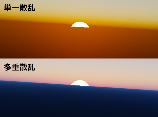 [単一散乱]は従来のNishitaモードに相当し、[多重散乱]は精度が向上した改善版になります。Nishita氏の名前が消えるのは少し寂しいですね。