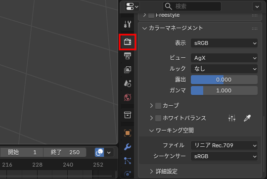 「Blender」本体の作業用の色空間「ワーキング空間」が導入されました。読み込んだ画像や動画はいったんこの空間に変換され、作業後、レンダリング時に指定の色空間に変換・出力されます。