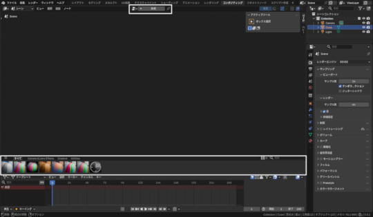 [ファイル]メニューの[新規]-[ビデオ編集]テンプレートからシーケンサーを利用する場合は、デフォルトで「Edit」シーンが追加されています。