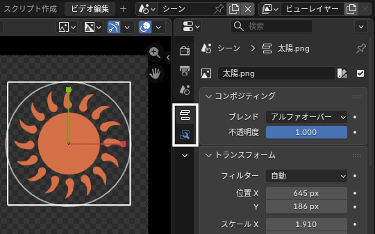 選択中のストリップのプロパティの表示が、タイムライン右側のサイドバーから、プレビュー右側のプロパティエディターの新しいタブ、「ストリップ」と「ストリップモディファイアー」に表示されるようになりました。