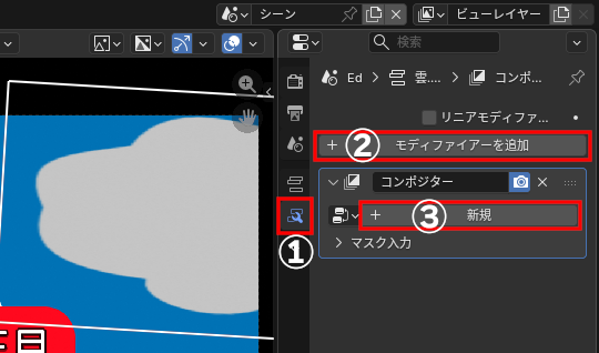 画像や動画にエフェクトを与えるコンポジターの[ノードを使用]チェックボックスが廃止され、他のノードエディター同様、[+新規]ボタンでノードツリーを新規追加するようになりました。
