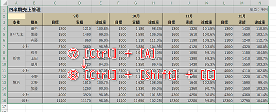 [Ctrl]+[Shift]+[[]キーがおすすめ