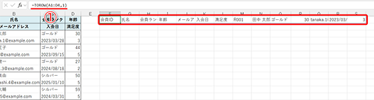 ここまで確認できれば、TOROW関数に表内のすべてのセル範囲を指定すれば、うまく処理できそうですね。