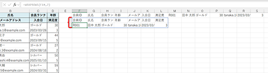 WRAPROWS(ラップ・ロウズ)関数は、指定した1行、または1列のデータを横方向に折り返して表形式に整えます。