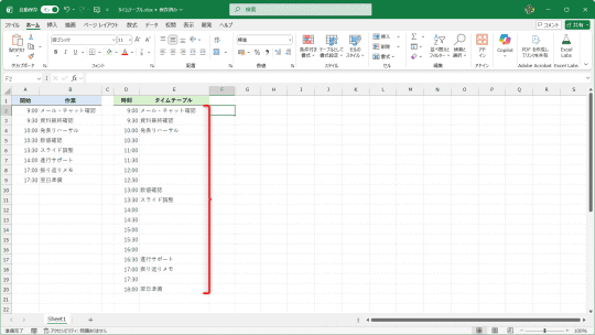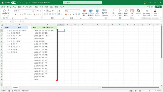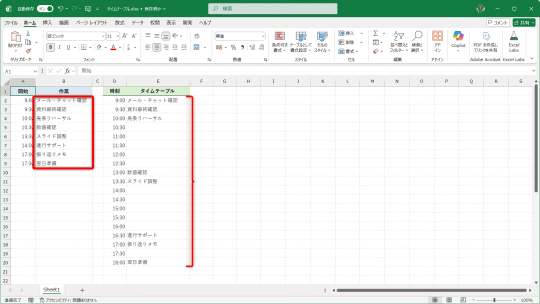 【Excel】予定表に入力すると即座にタイムテーブル化してくれるシート作成