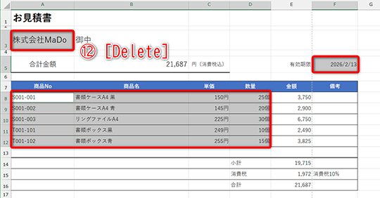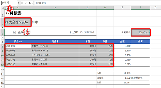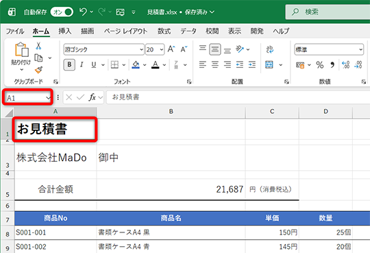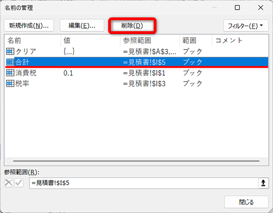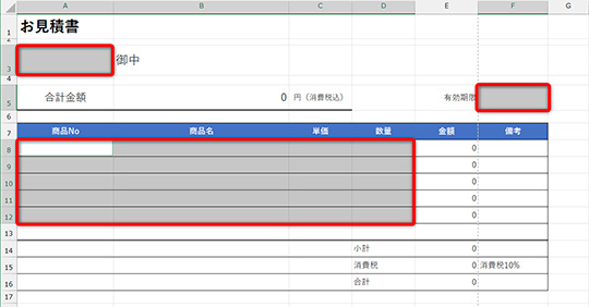 この例の見積書のように、使い回しを前提にするファイルは多いものです。入力済みの宛名や品名、単価、数量などを消し忘れてしまうとトラブルの元になります。消去が必要なセル範囲をあらかじめ選択して、連続していないセル範囲にも名前を付けられる点を活かしましょう。