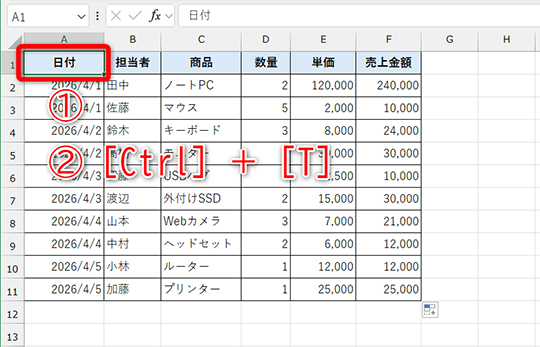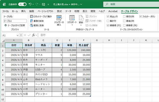 表をテーブルに変換すると、「データのまとまり」として扱われ、更新や集計のミスを防げるようになります。