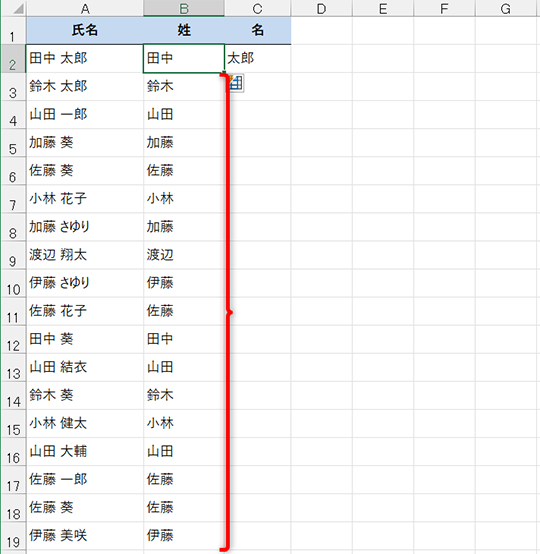 ただし、規則性が曖昧な場合は正しく動作しないこともあるため、結果の確認は必須です。詳しくはこちらの記事も参考にしてください。