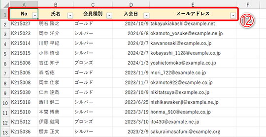 ただし、データが行方向と列方向に連続したセル範囲が、自動的に表として認識されます。空白行や空白列を含めてフィルターを設定したい場合は、表全体を選択してから操作してください。