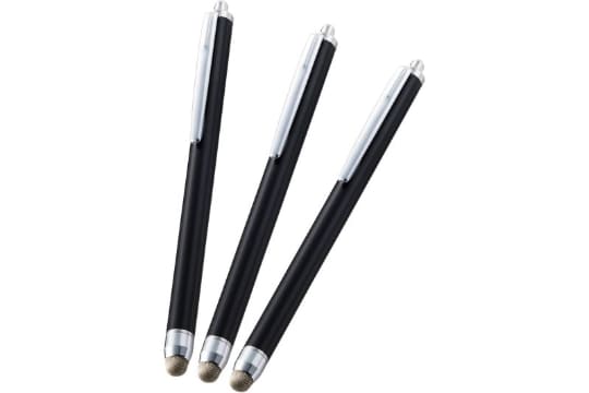 「PWTPS03BK/3」は、導電繊維を使った6mmペン先を採用したタッチペン。胸ポケットなどに挟めるクリップも装備しています。3本セットで1,100円(27%OFF)と安価なので、かばんやポケット、机などにそれぞれ配備しておくと便利。