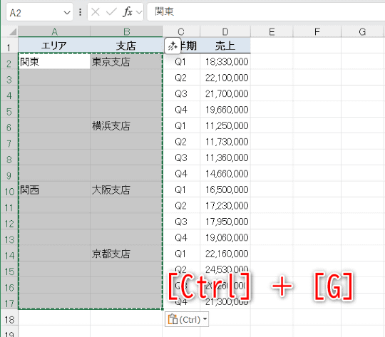 結合セルを分割して、1行ごとのデータとして整えたい場合、コピペを繰り返していたりしませんか? 結合されていたセルと同一のデータを一気に入力する方法があります。[選択オプション]と[Ctrl]+[Enter]を使った一括入力を利用しましょう。