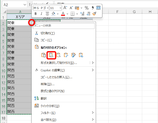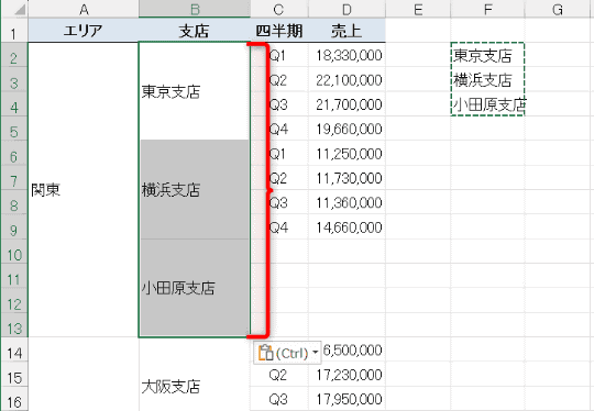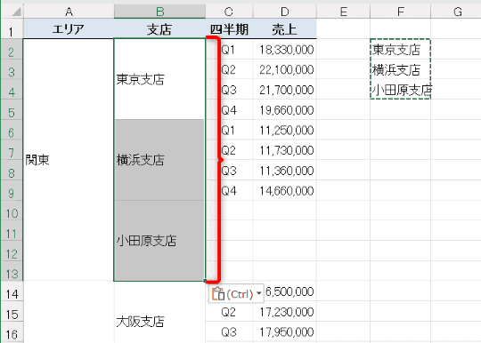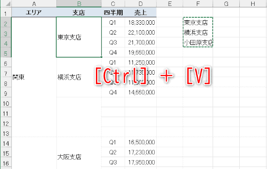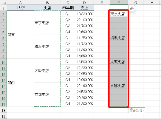結合されたセルからデータを取り出す場合、単純にコピペすると、結合セルのまま貼り付けられてしまうので、[値]として貼り付ける人もいるでしょう。