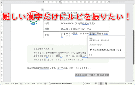 Word文書で小学生には読めない漢字だけにルビを付けたい! 自動判定させる方法