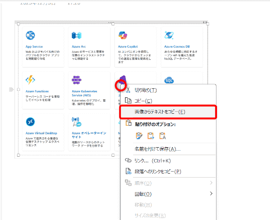 対象のデータのテキスト選択ができない、もしくは選択しにくい場合は、スクリーンショットを撮影して、OneNoteに放り込んでしまいましょう。後は画像を右クリックして[画像からテキストをコピー]を選択するだけです。
