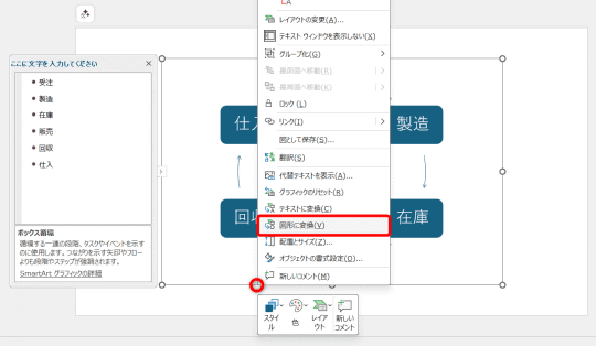 SmartArtを完成形として使うのではなく、“素材”として分解して活用することで、スライド表現の幅を大きく広げられますよ。