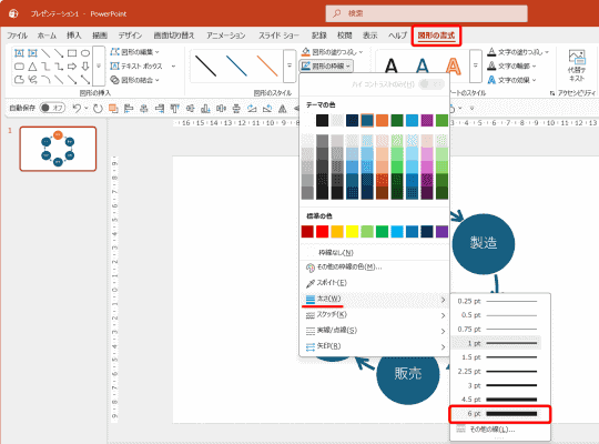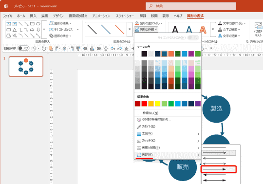 同じ要領で「矢印」の線の太さや形の変更も可能です。すべて削除して好みの矢印を挿入し直してもいいでしょう。