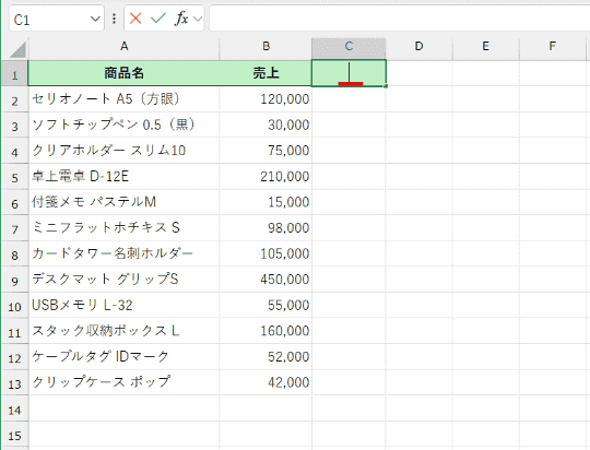 見出しに数式を入力したので、データの入力範囲をまとめて消去しても大丈夫になりました。運用も簡単になりますよね。ただし、数式の結果はスピルで表示されるため、スピルの結果が表示されるセル範囲(ここでは、セルC2~C100)にデータが入力されていると「#スピル!」エラーとなることに注意してください。