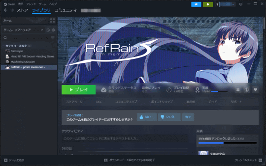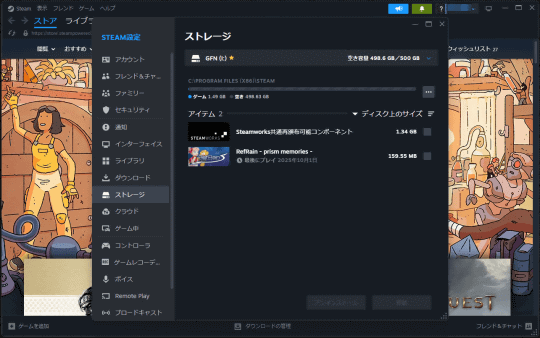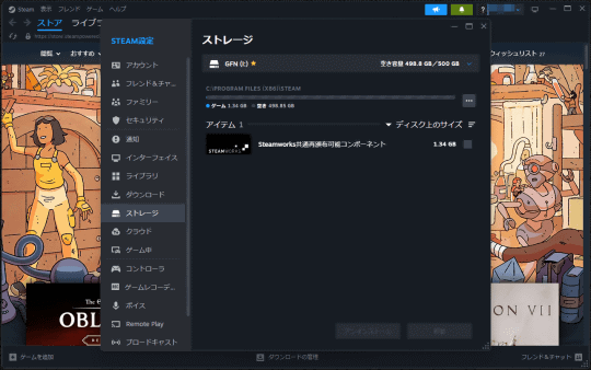 Steamのクラウドセーブ機能に対応したゲームであれば、ゲームのデータはクラウドに保存される。ゲーム本体が毎回消えても、セーブデータは常にSteam側に保存されるため、ゲームをインストールしさえすれば続きが遊べるというわけだ。